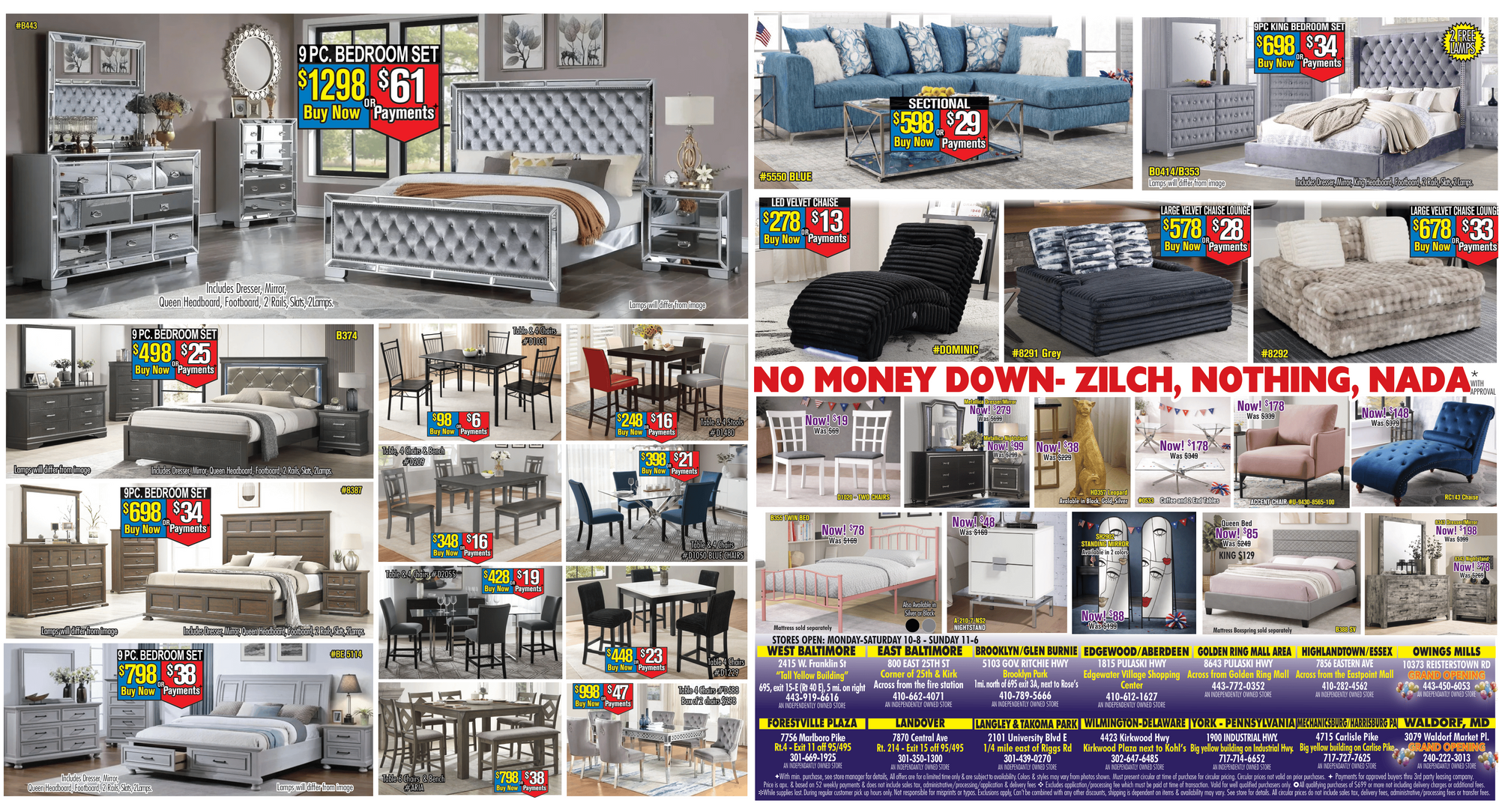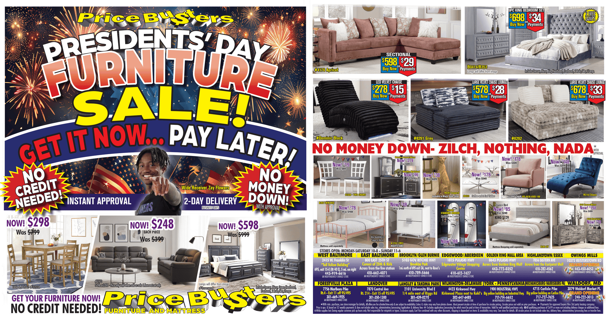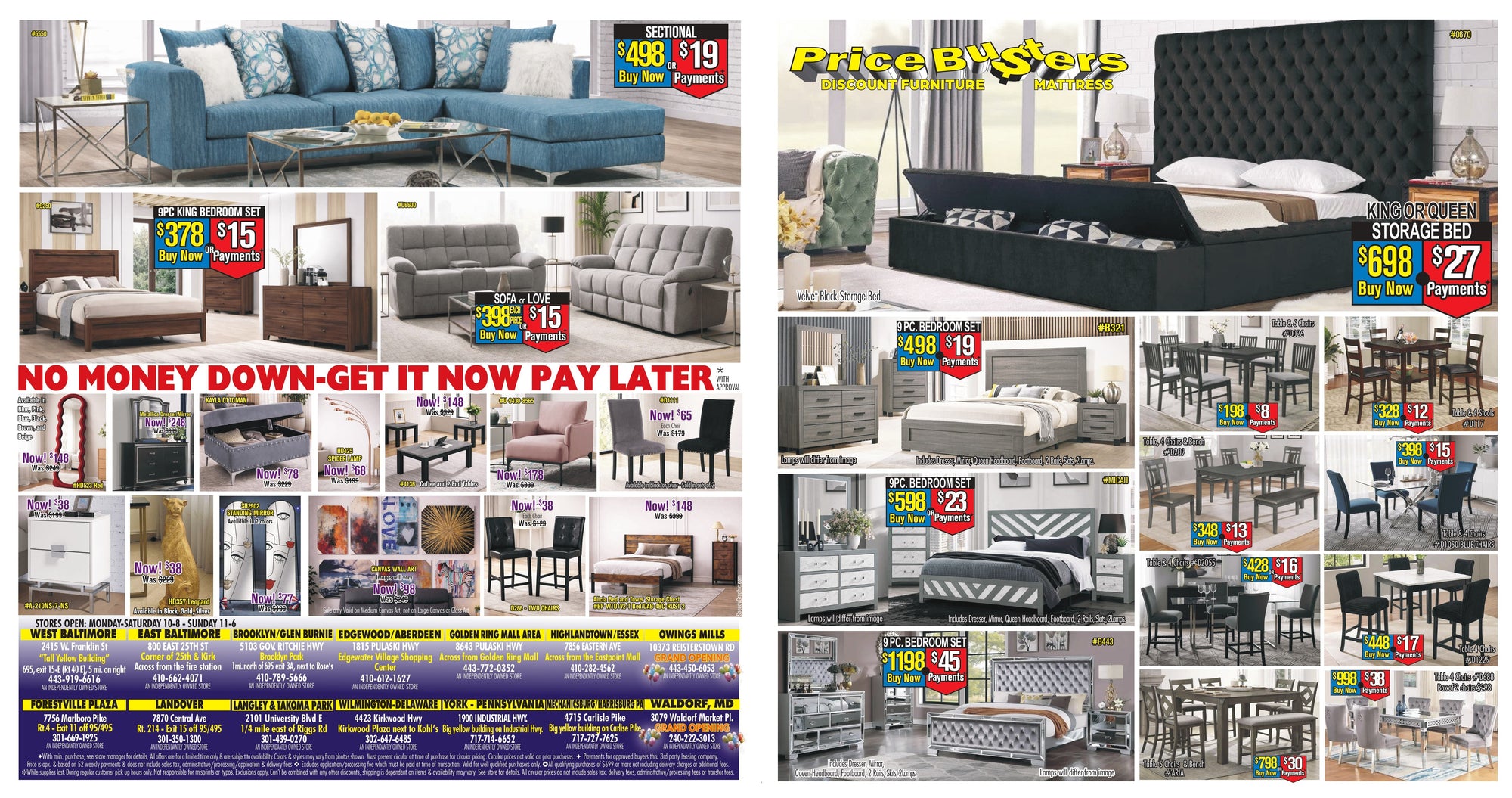 Stop into any of Price Busters discount furniture stores fourteen convenient locations throughout East and West Baltimore and in Brooklyn Park, Glen Burnie, Rosedale, Highlandtown Essex, Hyattsville, York PA, Forestville, Wilmington DE, and browse our massive selection of affordable furniture and mattresses. Price Busters home furniture stores offer you a wide selection of quality home furnishings for every room in your home. Check out our discount furniture and bargain furniture sections for quality furniture at an unbeatable value! Almost all of our furniture is in stock and ready for immediate delivery from our store to your front door.