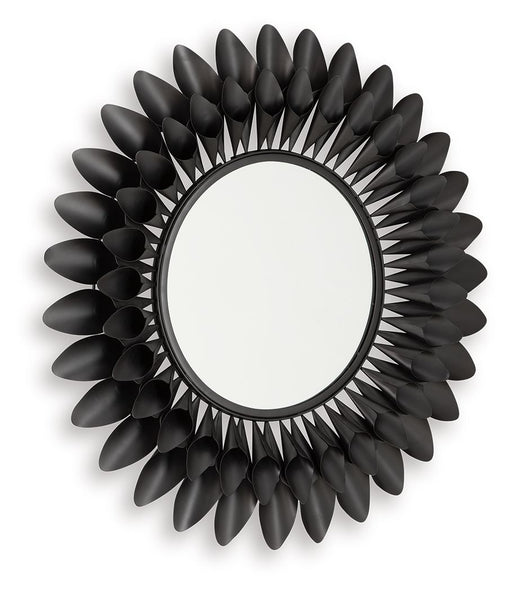 Signature Design by Ashley®The striking flower power of this accent mirror creates a captivating focal point in your home. Crafted from sleek black metal, the layered petal f...