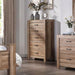 This versatile 5-drawer chest offers practical storage solutions for any bedroom or living space. Each drawer glides smoothly on quality hardware, providing ample room for clothing, linens, or personal items. The sturdy construction ensures long-lasting durability, while the classic design complements various décor styles. Perfect for maximizing vertical storage without consuming excessive floor space, this chest combines functionality with timeless appeal. Ideal for those seeking reliable furniture that delivers both performance and aesthetic value.