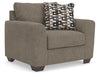Transitional and right on trend. This oversized chair's upholstery is a delightful change from the ordinary, with hints of soft brown giving the gray hue added depth. It’s punctuated with a chic accent pillow in an eye-catching, stylized stripe design. Whether you're hosting friends and family or relaxing solo, this chair invites homey, comfortable character into your space.