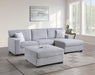 The Mendoza Sectional offers exceptional flexibility for modern living spaces. This thoughtfully designed piece features a reversible configuration, allowing you to adapt the layout to suit your room's dimensions and traffic flow. The neutral gray upholstery complements virtually any décor style while concealing everyday wear, making it practical for active households. Built with a sturdy frame and supportive seating, this sectional provides comfortable lounging for family gatherings or entertaining guests. The spacious design maximizes seating capacity without overwhelming compact rooms, making it an intelligent choice for those seeking both style and functionality in their furniture investment.