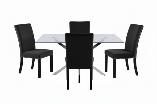 The Dejon Table + 4 Black Chairs brings contemporary style to your dining space with a sleek glass top and coordinating seating. The spacious 59" ×...