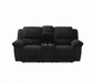 Diamond Black Reclining Console Love Seat combines sophisticated design with premium comfort features. This expertly crafted piece showcases a sleek black finish that complements any modern or contemporary décor. The dual reclining mechanism allows each seat to adjust independently, letting you customize your comfort level while the integrated console between the seats provides convenient storage and cup holders for entertainment essentials. Built with durable construction and high-quality upholstery, this love seat delivers both style and functionality for your living space. Perfect for movie nights, relaxation, or creating an inviting seating arrangement that doesn't compromise on comfort or aesthetics.
