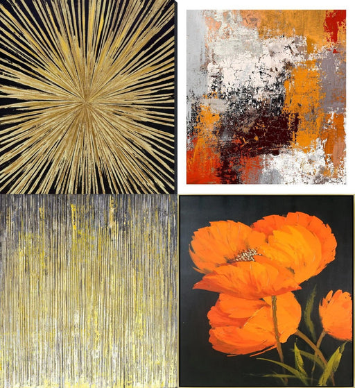 WB1050C Rustic Ember Abstract - 48 X 36 TT1812 Radiant Golden Sunburst - 39 X 50 SC1434 Hand Painted Textured Canvas - 36 X 46 TT1059B Hand Painted...