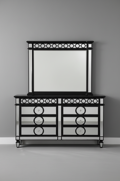 Furniture WorldThe Janett Black Dresser Mirror is a sophisticated addition to any bedroom ensemble, designed to complement modern and traditional décor styles a...