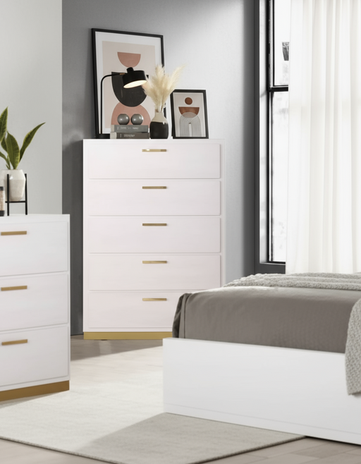 Global FurnitureThe Amelia 5 Drawer Chest combines practical storage with refined design, making it an excellent addition to any bedroom or living space. This vers...