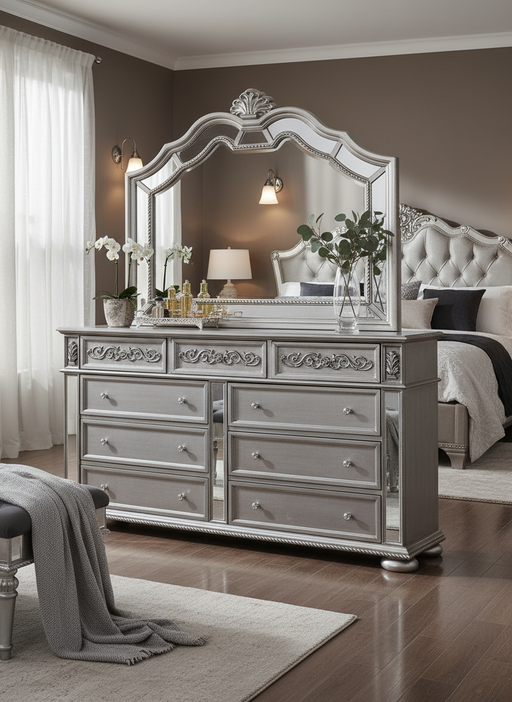 Global FurnitureThe Diana Silver Dresser stands as a versatile centerpiece for any bedroom, offering sophisticated storage solutions with its sleek silver finis...